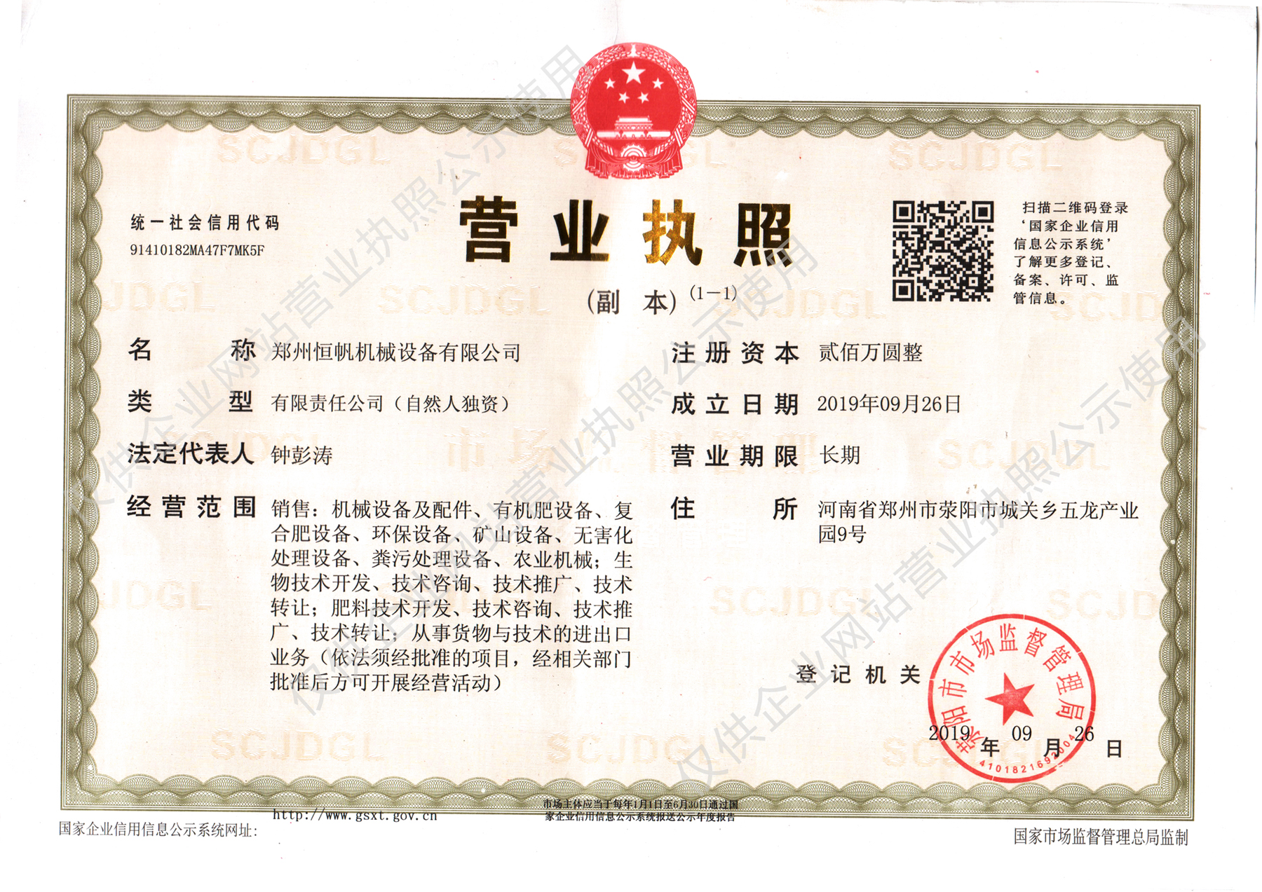 版權所有:鄭州恒帆機械設備有限公司  地址:河南省鄭州市滎陽市城關鄉五龍產業園  豫ICP備19044896號-1  網站地圖有機肥生產線配置方案豫公網安備 41018202000710號  營業執照公示